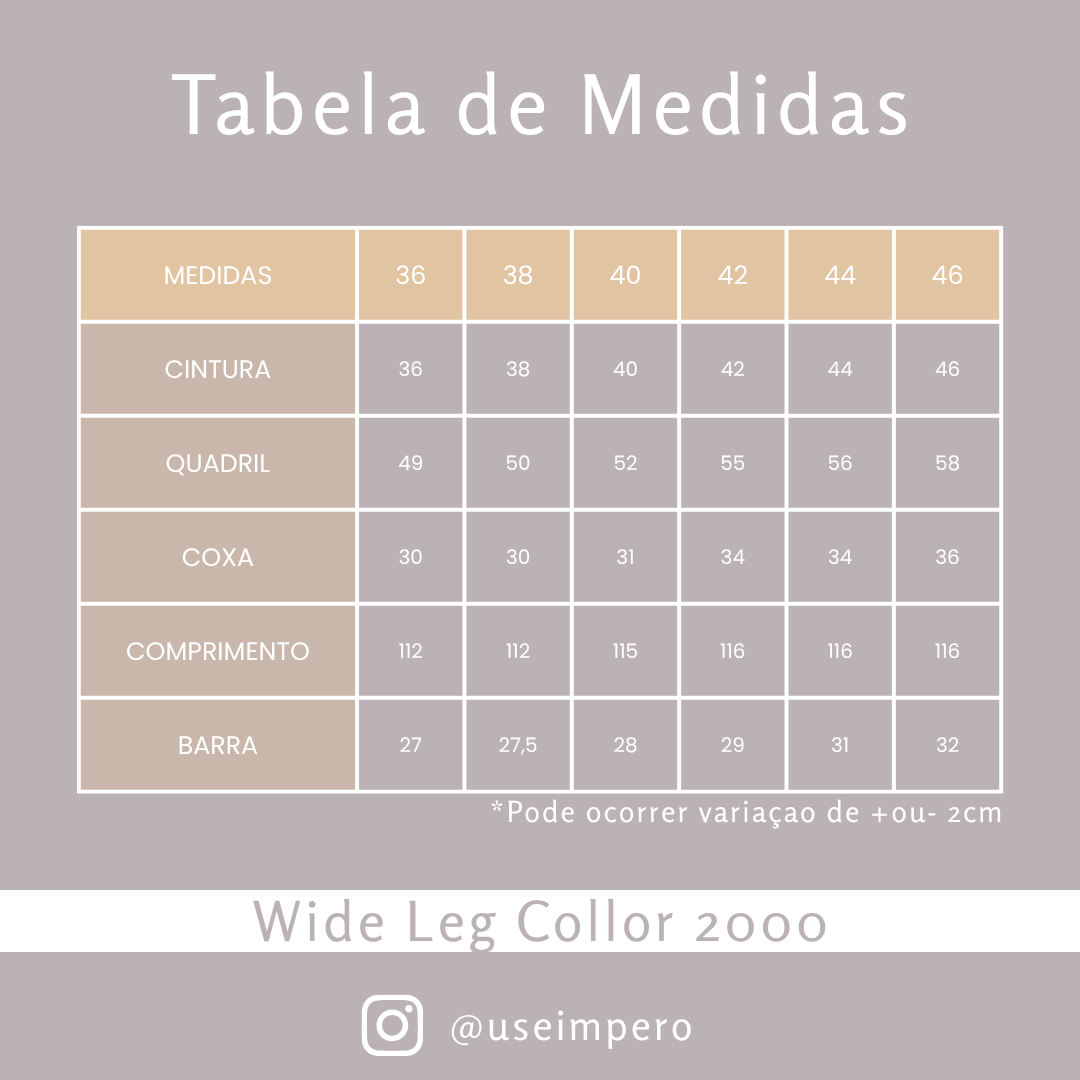 Sua modelagem wide leg garante um caimento fluido e amplo, valorizando a silhueta com um toque contemporâneo. Ideal para diversas ocasiões, desde um passeio casual até um ambiente de trabalho despojado, a calça se adapta facilmente a diferentes combinações.